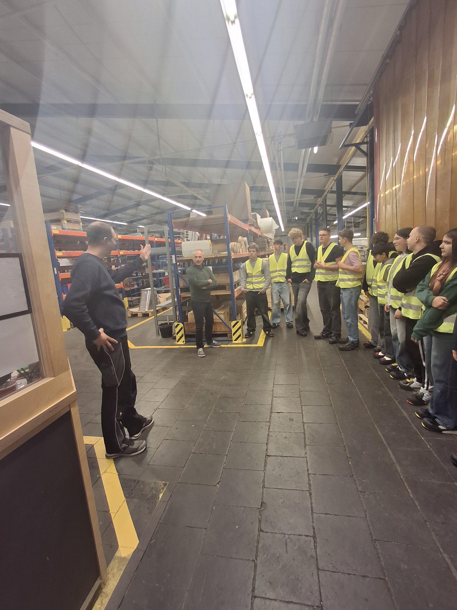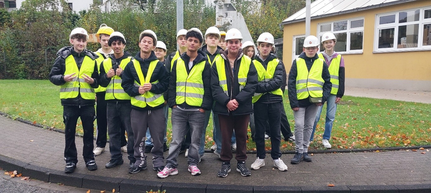 Bei Dörrenberg in Engelskirchen wurde die Schülergruppe von Mitarbeitern abgeholt, die ihnen Sicherheitswesten und Schutzhelme gaben. Danach wurde ihnen das Gelände und die unterschiedlichen Arbeitsbereiche gezeigt und welche möglichen Berufe damit verbunden sind. Die Schüler/innen konnten beim Gießen eines Werkstücks zusehen und die Arbeitsbereiche der Mechaniker, der Werkstoffprüfung und der Materialbeschichtung sehen.