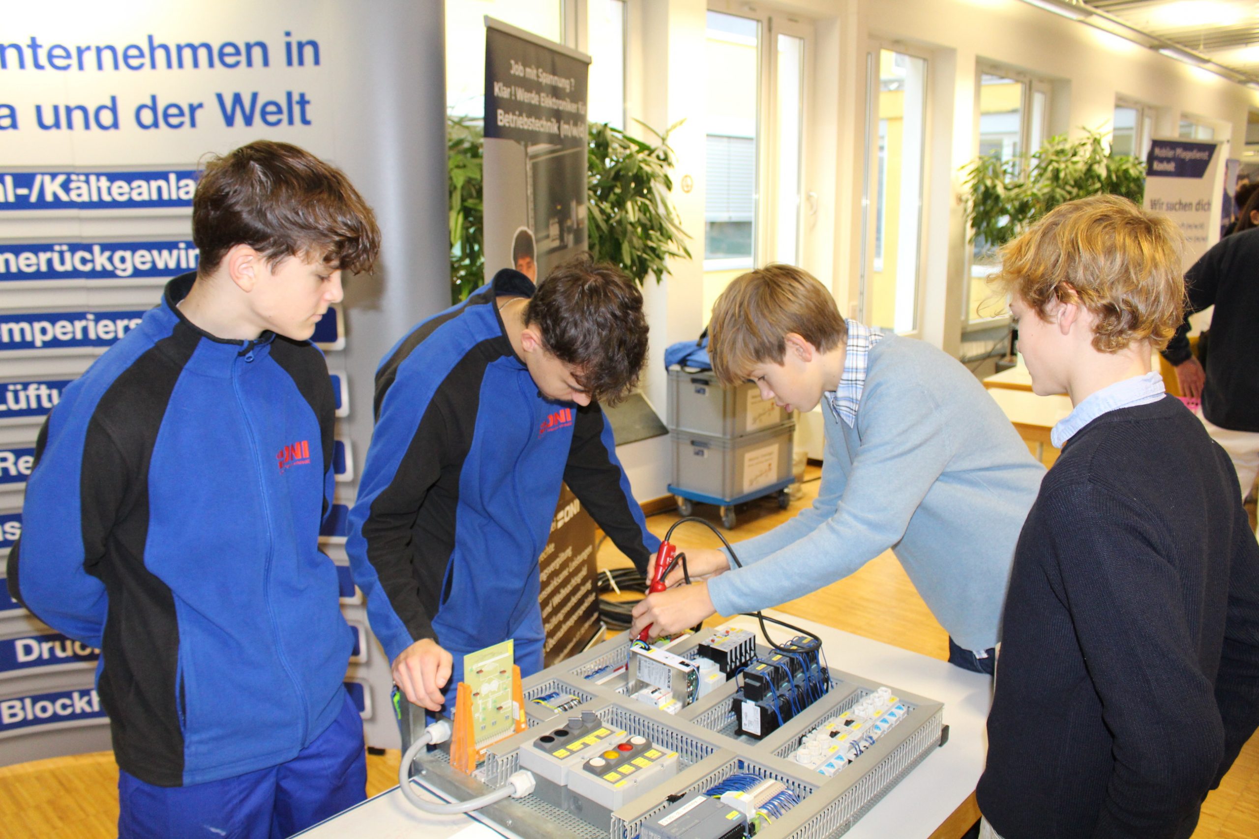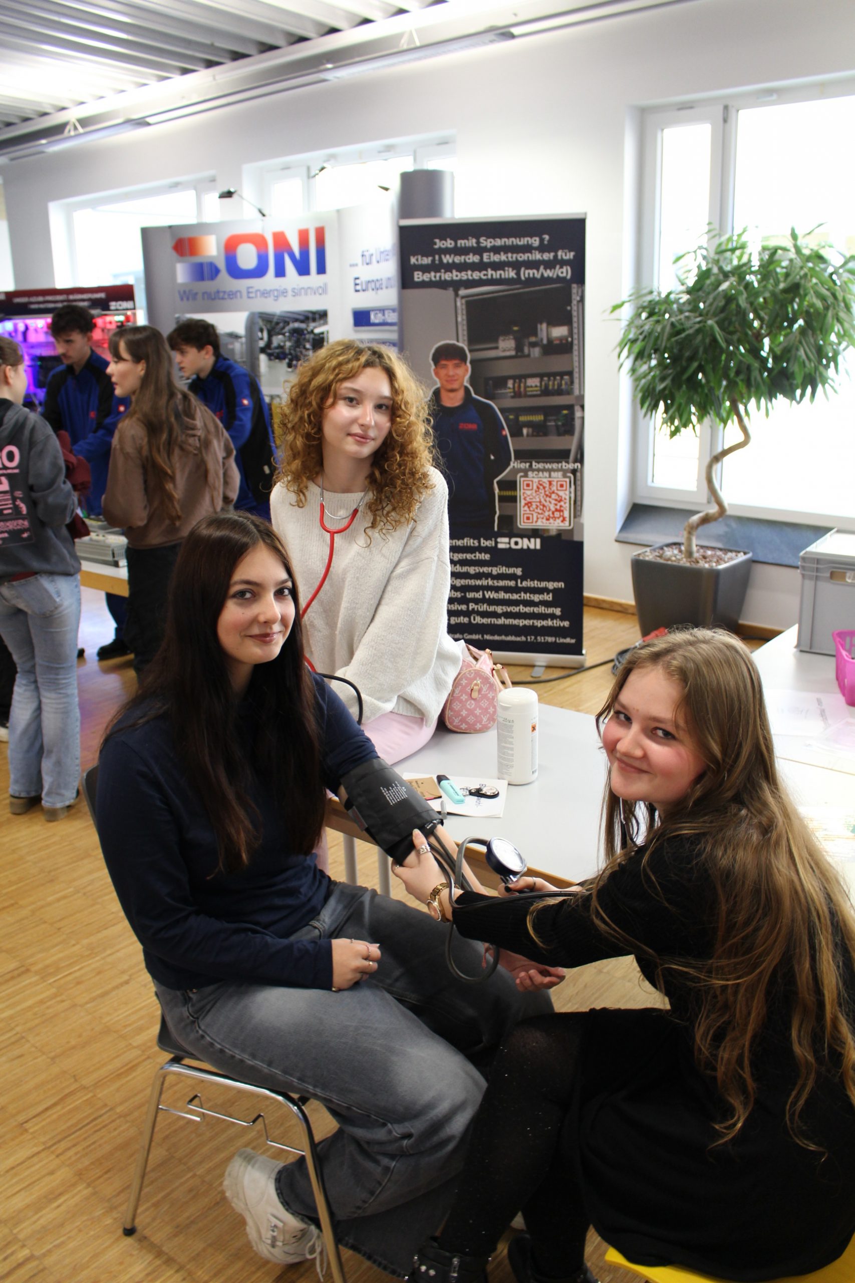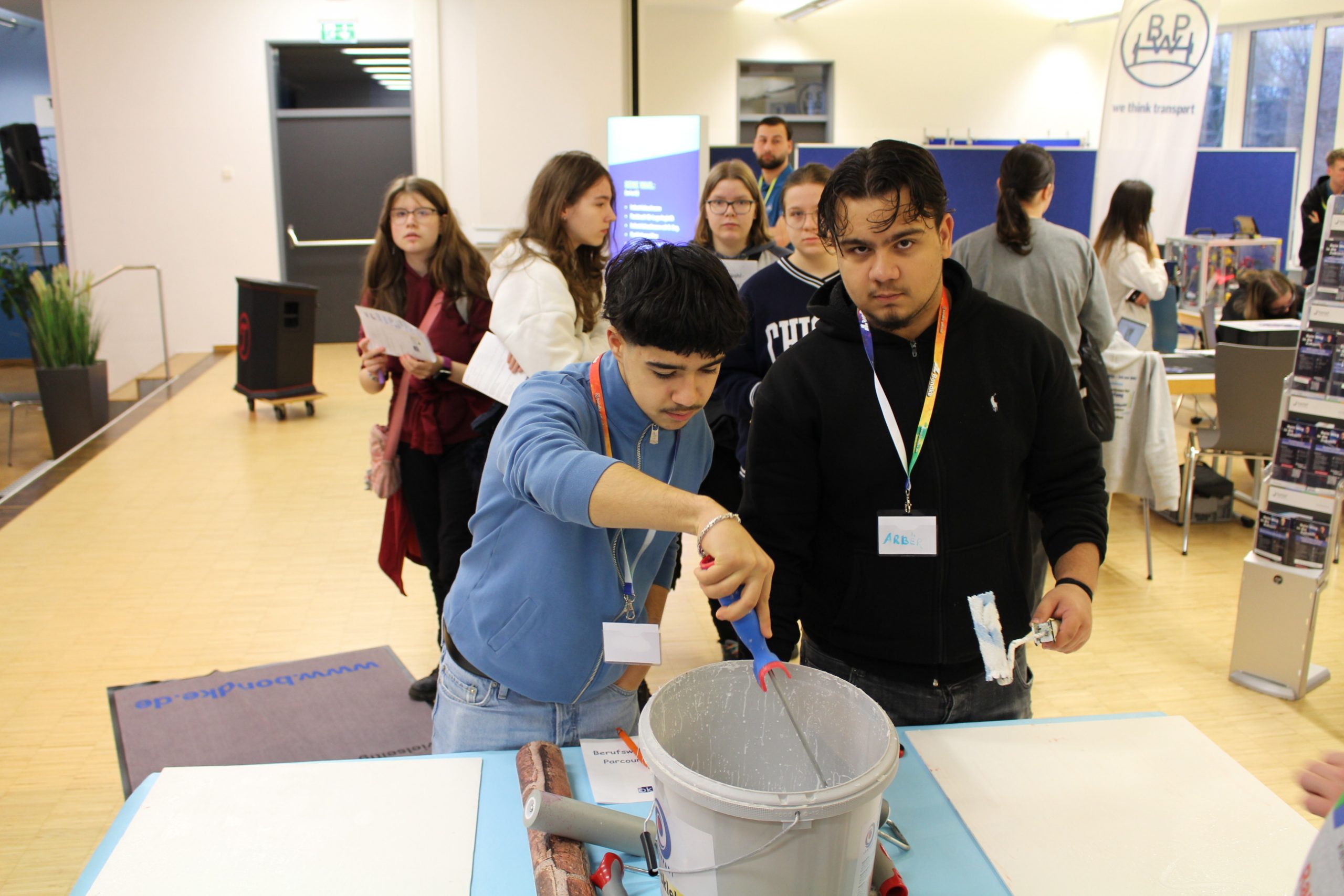 Personalleitung, Ausbilder und Auszubildende betreuten die Schülerschaft bei ihrem Rundgang und stellten sich vor. An jeder Station gab es eine besondere Aufgabe, z.B. Blutdruck messen, Löten, Malen, Tapezieren, Werkzeuge für Maschinengießtechnik zusammenbauen, usw.