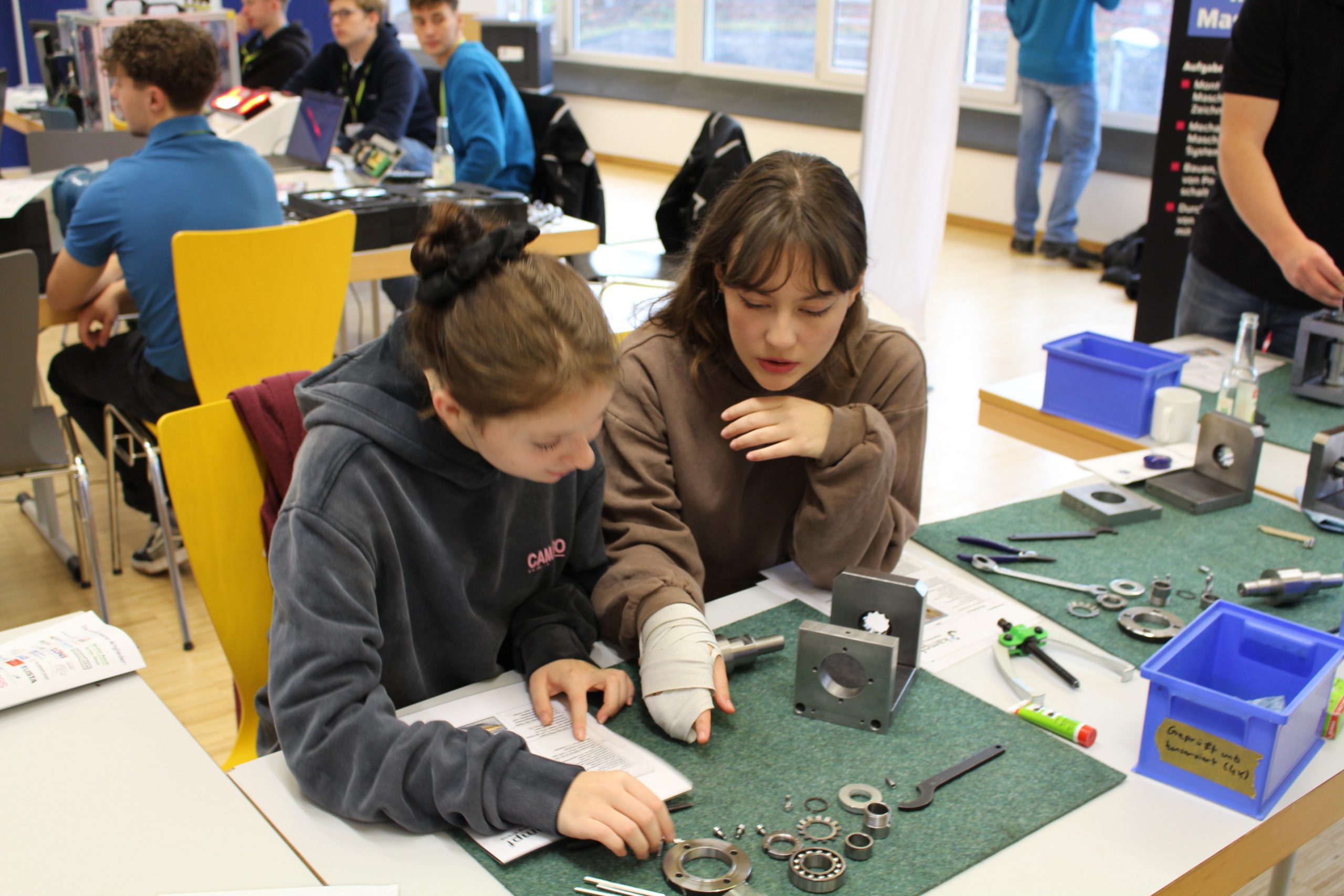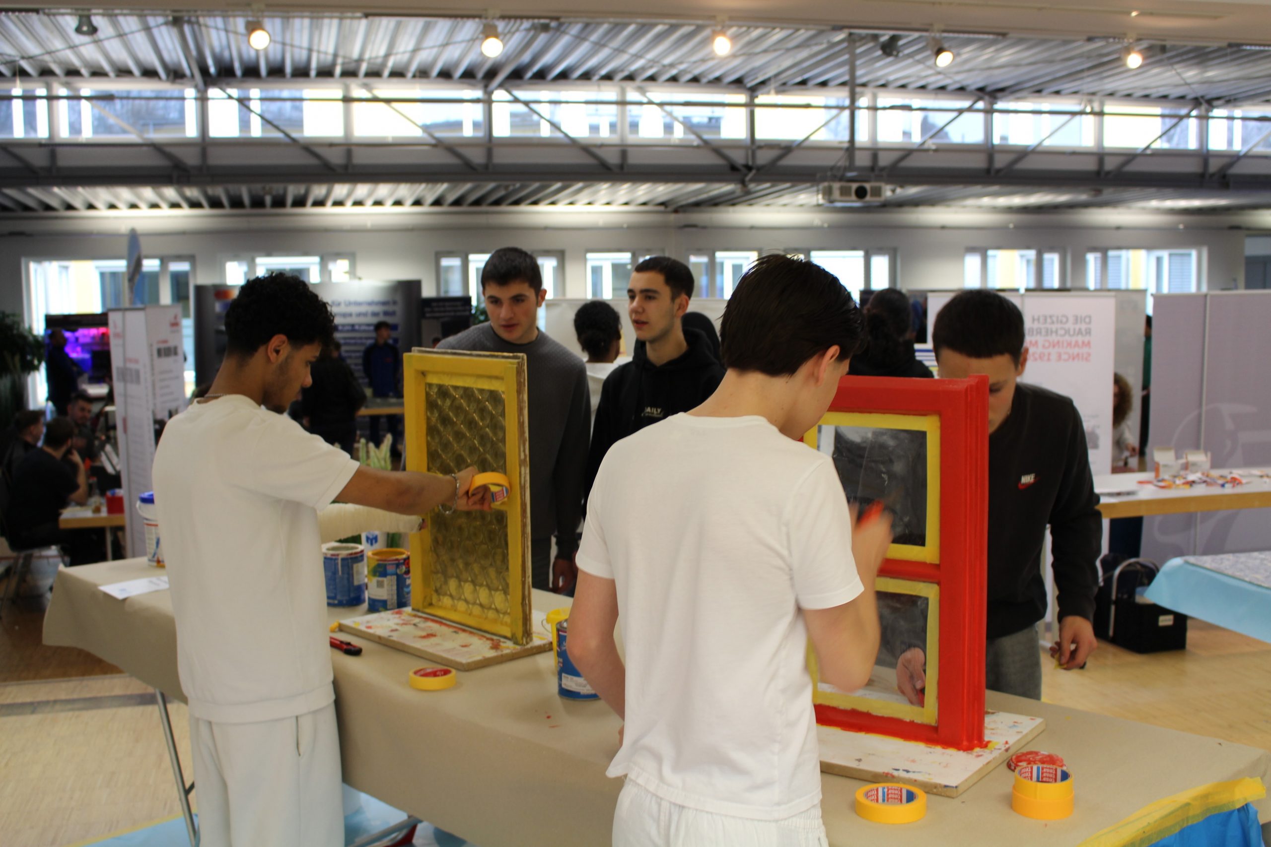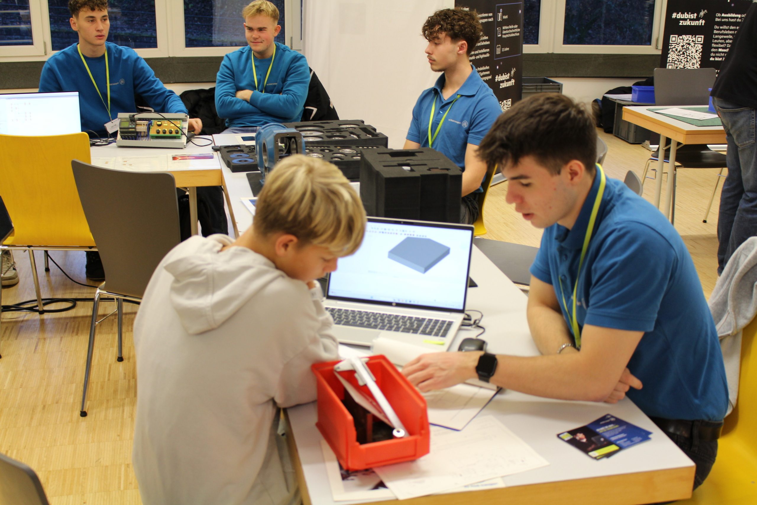 Personalleitung, Ausbilder und Auszubildende betreuten die Schülerschaft bei ihrem Rundgang und stellten sich vor. An jeder Station gab es eine besondere Aufgabe, z.B. Blutdruck messen, Löten, Malen, Tapezieren, Werkzeuge für Maschinengießtechnik zusammenbauen, usw.