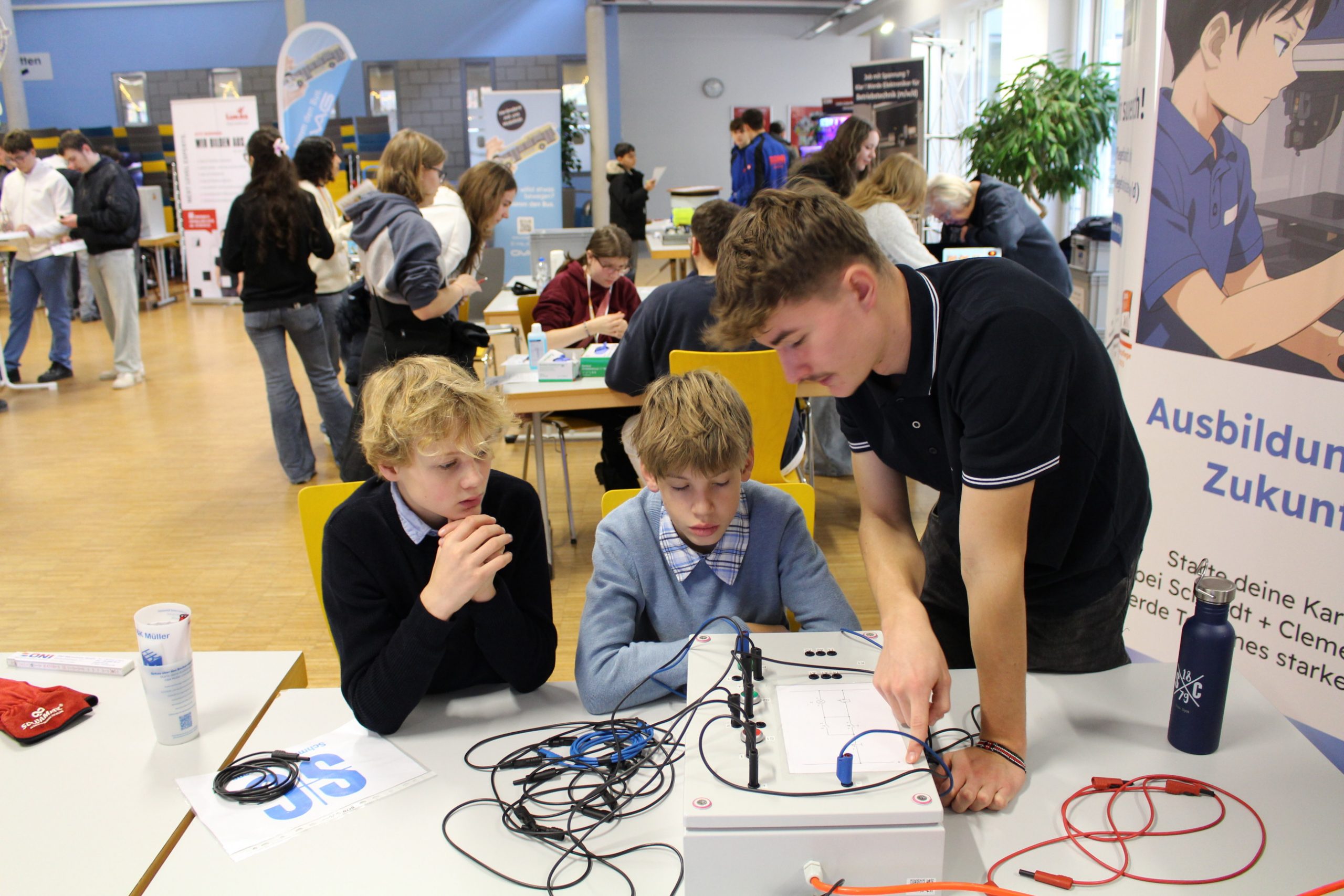 Zwei Auszubildende stellten den Schülern verschiedene Ausbildungsberufe vor, die das Unternehmen anbietet – darunter Elektroniker/in, Fachinformatiker/in, Fachkraft für Lagerlogistik, Fachkraft für Veranstaltungstechnik, Kaufmann/-frau für Groß- und Außenhandelsmanagement sowie Veranstaltungskaufmann/-frau.