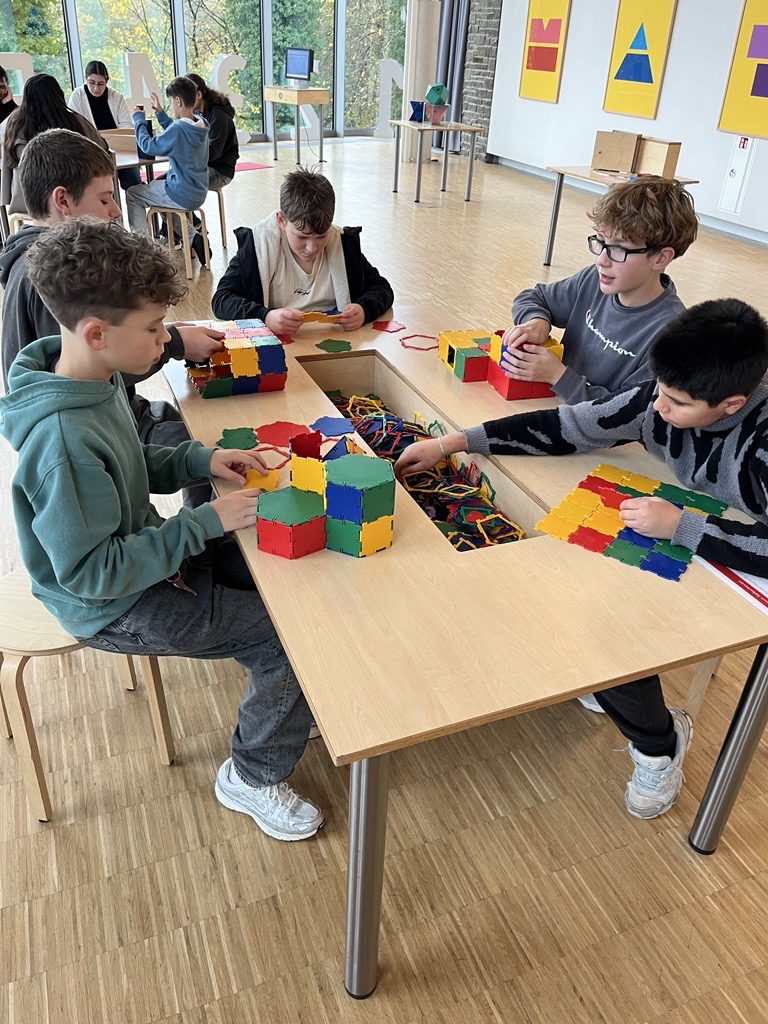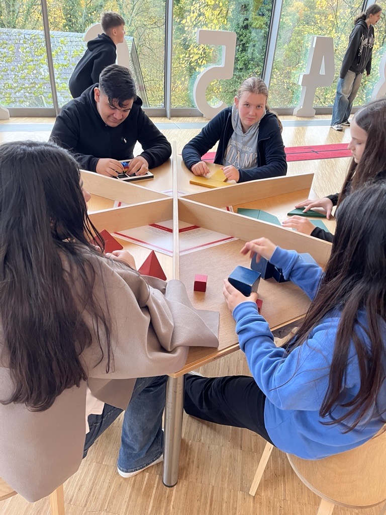 Nach einer kurzen Pause ging es im zweiten Teil des Tages mit einem völlig anderen Thema weiter – „Mathematik zum Anfassen“. Die gleichnamige Sonderausstellung lud die Klasse dazu ein, Mathematik einmal ganz anders zu erleben: spielerisch, kreativ und mit vielen Aha-Momenten. Hier wurde gerechnet, gebaut, gestaunt und experimentiert – Vorkenntnisse waren überflüssig!