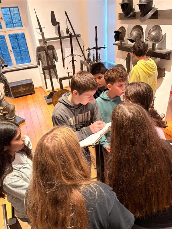 Im ersten Teil des Programms stand das „Homburgische Turnier“ auf dem Plan. Hier durften die Schülerinnen und Schüler das Schloss und seine Geschichte auf besondere Weise kennenlernen. Beim Rundgang durch die Sammlung galt es, verschiedene Aufgaben zu lösen und den Turniervogt mit Geschick, Kreativität und Teamgeist zu überzeugen. Mit viel Einsatz, Lachen und Köpfchen meisterten die Teams ihre Herausforderungen und tauchten dabei tief in das Leben und Denken vergangener Jahrhunderte ein.