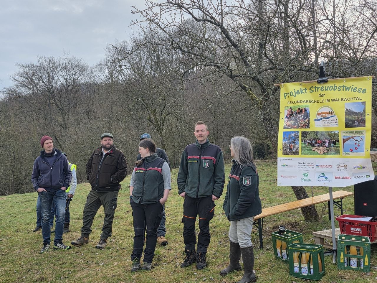 Gepflanzt wurden Apfel- und Birnbäume – sorgfältig ausgewählte, robuste alte Sorten, die gut zu unserer Wiese passen und einen wichtigen Beitrag zur Artenvielfalt leisten.