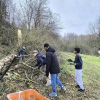 Am 20. Februar griffen zehn Schülerinnen und Schüler unserer Schule gemeinsam mit dreizehn Firmenkundenberaterinnen und -beratern der Kreissparkasse Köln zu Hacke und Spaten.