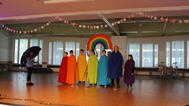 Ein abwechslungsreicher Kennenlernnachmittag vor den Sommerferien, ermöglichte schon einen ersten Einblick in die neue Schule. Ein buntes Programm mit gemeinsamer religiöser Feier, Vorstellung der Schule und ihren Räumlichkeiten, Musikstücken der Schulband, einer Akrobatikshow und Vielem mehr wurde von den Schülerinnen und Schülern der letzten Klassen 5 und 6 liebevoll vorbereitet und gestaltet. Anschließend konnten die neuen Fünftklässler schon ihre Mitschüler, Klassenlehrer und neuen Klassenräume kennenlernen, während die Eltern bei Kaffee und Kuchen in der Mensa ins Gespräch kommen konnten.