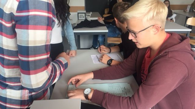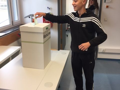 Am Mittwoch, den 20. September war es soweit. Die Klassen kamen in das Wahllokal, indem sich die Wahlkabinen und die Wahlurne befand. Zunächst mussten die Schülerinnen und Schüler ihre Wahlbenachrichtigung abgeben und bekamen den Wahlzettel, der genau dem Wahlzettel entsprach, der in unserem Wahlkreis auch bei der Bundestagswahl verwendet wird, inklusive der richtigen Kandidatennamen. Mit dem Wahlzettel ging es danach in eine der beiden Wahlkabinen, in denen die Schülerinnen und Schüler geheim ihre Kreuzchen setzen konnten. Der gefaltete Wahlzettel wurde anschließend in die versiegelte Wahlurne geworfen.