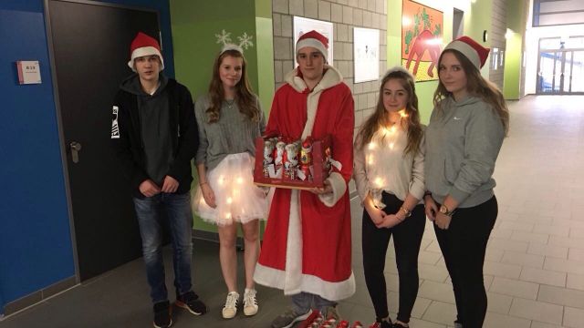 Am 06.12.2017 hat der Nikolaus mit seinen fleißigen Helfern die Sekundarschule besucht und die zuvor von Freunden bestellten Schokoladennikoläuse verteilt. Der Erlös der bestellten Nikoläuse kam dem Abschlussjahrgang 10 zu Gute. Allen beteiligten hat die Aktion viel Spaß gemacht.