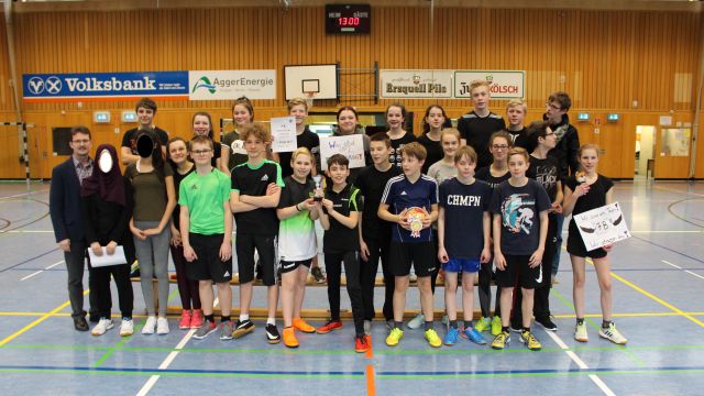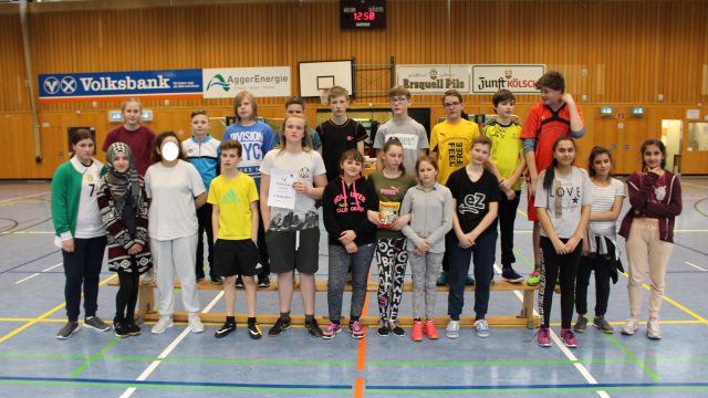 Eine willkommene Unterbrechung des Schulalltags bildete das Völkerballturnier der Jahrgänge 5-8. Der Einsatz aller Klassen im Kampf um den Titel war bemerkenswert. Immer wieder angefeuert von lautstarken Unterstützerteams kämpften die Klassen leidenschaftlich um den Pokal. Dieser ging im 5/6. Jahrgang an die 6c und im 7/8. Jg an die 7b. Wir gratulieren allen Siegern herzlich.