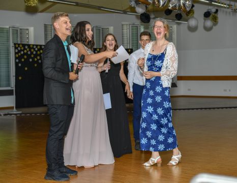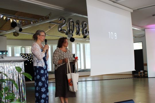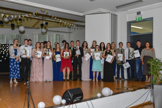 Gemeinsam mit Eltern, Freunden, Lehrkräften und Schulleitung nahmen die Schülerinnen und Schüler des 10. Jahrgangs sehr feierlich und emotional Abschied von ihrer Sekundarschulzeit. Eingeleitet wurde die Abschlussfeier mit einem ökumenischen Gottesdienst, der zu großen Teilen von den Schülerinnen und Schülern des Abschlussjahrgangs gestaltet wurde. Der offizielle Festakt fand anschließend in der stimmungsvoll hergerichteten Aula unserer Schule statt und wurde mit einem tollen Tanzmedley der Zehntklässlerinnen und Zehntklässler eröffnet. Weiter im Programm ging es mit Reden, Danksagungen, persönlichen Abschlussworten und der feierlichen Zeugnisübergabe. Nach dem Überreichen der Zeugnisse präsentierten die Abschlussklassen ein abwechslungsreiches Programm, das sowohl Dankes- und Abschiedsworte als auch kreative und musikalische Beiträge beinhaltete. So durfte sich das Publikum über selbstgeschriebene Liedtexte, eine Bildershow sowie ein Ratespiel freuen.