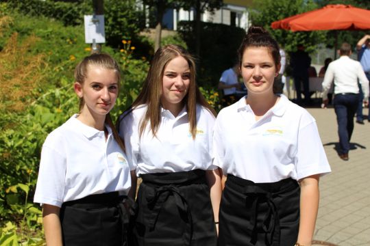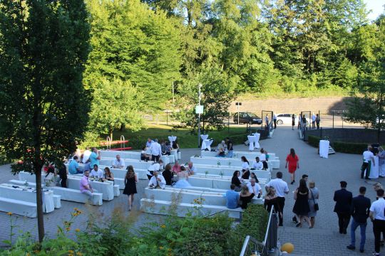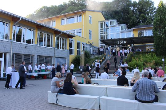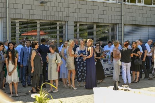 Anschließend wurde die Feier auf dem festlich geschmückten Schulhof fortgesetzt. Bei einem vielfältigen Buffet, netten Gesprächen und sonnigem Wetter ließen die Abschlussklassen und ihre Gäste den Abend gemütlich ausklingen. Am Ende gingen alle hochzufrieden und voller schöner Erinnerungen nach Hause.