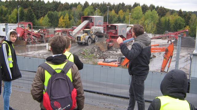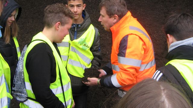 Nach einem ausführlichen Vortrag im neuen Schulungszentrum ging es dann raus aufs Gelände und zu den einzelnen Arbeitsplätzen. Nicht immer ohne Herausforderung. In der Vergärungs- und Kompostieranlage kamen einige der Schüler an ihre Grenzen. Interessant aber in diesem Zusammenhang welche Probleme Plastiktüten im Bioabfall bereiten und wie schnell Kunststoffe in die Nahrungskette gelangen. Das hat manche(n) nachdenklich werden lassen.