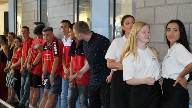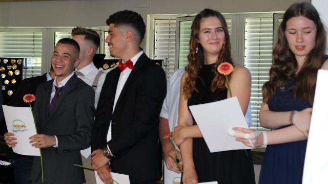 Am Freitag, den 28. Juni 20919, wurde der zweite 10er Jahrgang der Sekundarschule Engelskirchen feierlich verabschiedet. Beim herrlichen Wetter wurde die Abschlusszeremonie in der St. Jakobus Kirche durcheinen durch die Schülerinnen und Schüler selbstvorbereiteten ökumenischen Gottesdienst, dem auch deren Familien und Lehrer beiwohnten, eröffnet. Anschließend trafen sich alle zum Sektempfang auf dem Schulhof, der durch seinen „chilligen“ Loungecharakter zu den ersten Gesprächen animierte. Pünktlich um 17.00 Uhr versammelten sich alle Absolventen und deren Gäste in der Schulmensa, wo die hochoffizielle Zeugnisübergabe stattfand. Dieser Akt wurde durch zahlreiche unterhaltsame, aber auch seriöse und zum Reflektieren bewegende Reden begleitet. Ergänzt wurden sie durch ansprechende musikalische Darbietungen und Tänze. Die Zeremonie mündete in einer „Aftershowparty“, während der sich die Partygäste nach einer Stärkung am abendlichen Buffet und beim Kaltgetränk lebhaft über die gemeinsam verbrachte Zeit aber auch über die Zukunftspläne unterhielten.