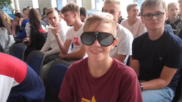 Herr HW Rudloff von der Ehrenamtsinitative Weitblick besuchte am Donnerstag, den 5. September die 9er Klassen und lud mit Herrn J. Gerwing die gesamte Jahrgangsstufe in die Mensa unserer Schule ein.