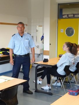 Begleitet werden sie dabei von den Lehrern Herrn Gerwing und Herrn Mourmouris, auch steht beratend Polizeihauptkommissar Uwe Petsching zur Seite, der unsere neuen Verkehrshelferinnen und –helfer , wie schon in den vergangenen Jahren, sehr gut ausgebildet und auf den jetzt beginnenden Dienst vorbereitet hat.
