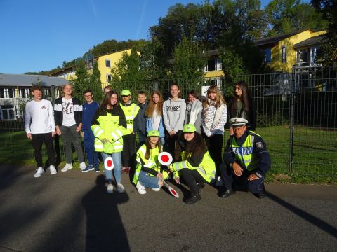 Sie hatten gut gelernt und gebüffelt, unsere Schülerinnen und Schüler der Verkehrshelfer-AG. Der Lernstoff reichte von der Kenntnis der Straßenverkehrsordnung über Anhaltewege bis zum Sicherheitsanspruch: Unfälle vermeiden.