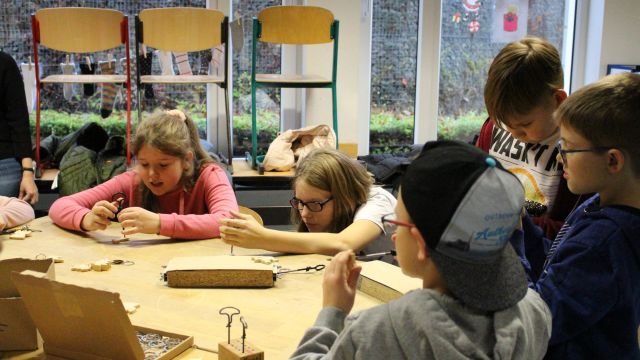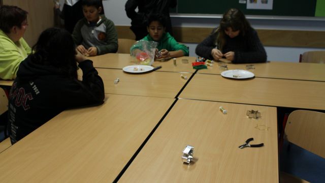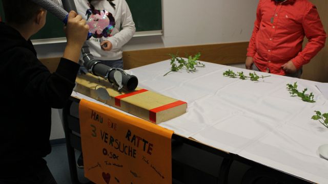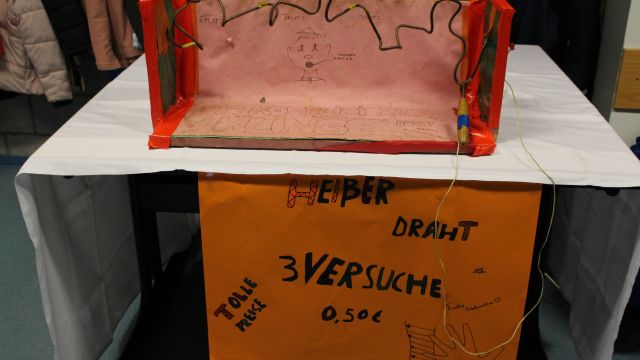 Außerdem hatten sich einige Klassen Mitmachaktionen ausgedacht. Die Gäste und unsere Schülerinnen und Schüler konnten ihre Geschicklichkeit beim „heißen Draht“ testen oder beim Dosenwerfen ihre Treffsicherheit unter Beweis stellen. Auch handwerkliche Geschicke konnten beim Erstellen von Schlüsselanhängern gezeigt werden.