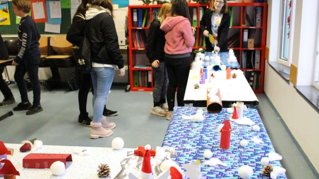 Am 07. Dezember lud die Sekundarschule alle Viertklässlerinnen und Viertklässler sowie deren Eltern und alle Interessierten zum jährlichen Tag der offenen Tür ein. Dieser fand in diesem Jahr als Weihnachtsbasar statt, für den Schülerinnen und Schüler mit ihren LehrerInnen einige Verkaufsstände aufgebaut hatten, um allerhand Selbstgemachtes zu verkaufen. Von Kerzen, über Seifen, selbstgenähten Scrunchies oder Lesezeichen, bis hin zur zum Ort der Schule passenden Engelsfabrik wurde eine große Vielfalt angeboten.
