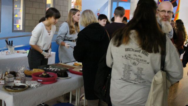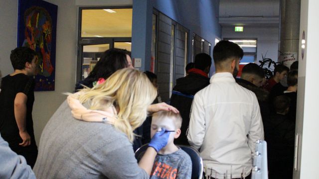 Neben tollen Verkaufsständen durfte das leibliche Wohl natürlich nicht zu kurz kommen. So wurden in der Cafeteria, die der 8. Jahrgang bewirtete, Waffeln gebacken und Kaffee und Kinderpunsch ausgeschenkt. Neuner und Zehner grillten Würstchen auf dem Hof.
