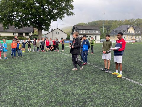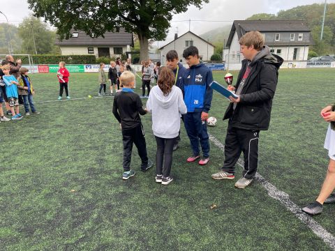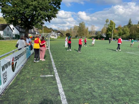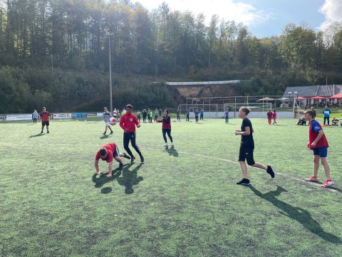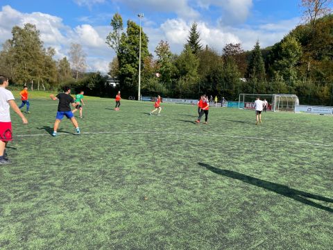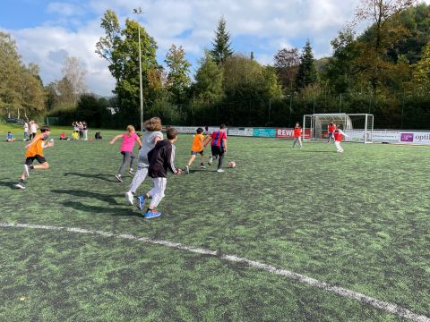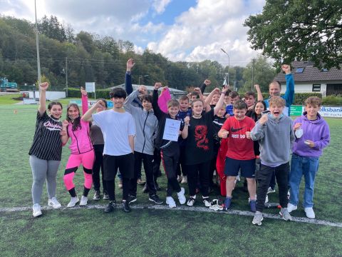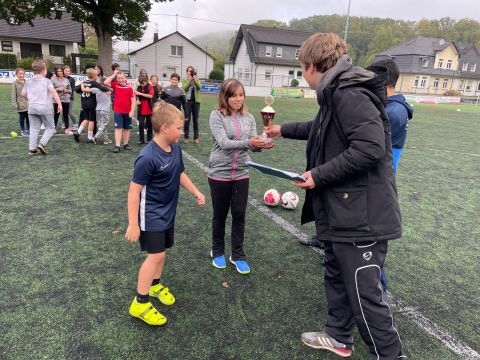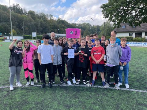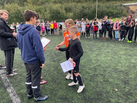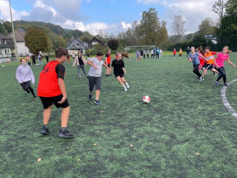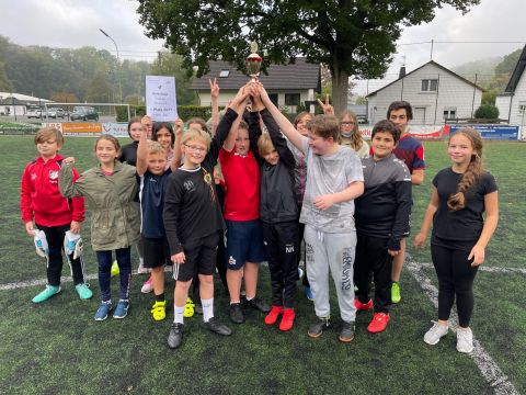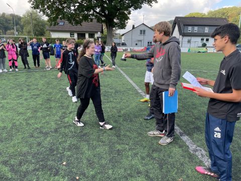 Der traditionelle Herbstcup fand am Donnerstag, den 8.10.2021, nach einem Jahr Zwangspause endlich wieder statt. Das Konzept des von unseren Schülerinnen und Schülern sehnlichst erwarteten Fußballturniers musste „aus aktuellem Anlass“ zwar etwas überarbeitet werden, aber das tat der fußballbegeisterten Stimmung keinen Abbruch. Ganz im Gegenteil, die Verlegung der schulinternen Fußballwettkämpfe von der Sporthalle auf den Ründerother Fußballplatz sorgte für ein authentisches Fußballgefühl: Große Tore, grüner (Kunst-)Rasen, (Kunst-)Lederball und frische Luft… Auch die Fangesänge der Zuschauer zur Anfeuerung der eigenen Klasse sorgten für Stadionatmosphäre und spornten unsere Spielerinnen und Spieler zu Höchstleistungen an. Dabei stand der Fair-Play-Gedanke stets im Vordergrund. Wir bedanken uns bei allen Teilnehmern und Zuschauern für den gelungenen Herbstcup und gratulieren den Klassen 6a, 8a und 9b für die Turniersiege in ihren jeweiligen Wettkampfklassen.