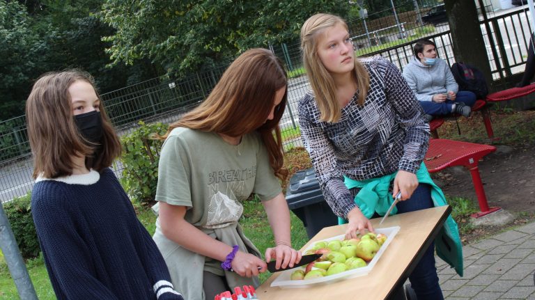 Während des Festes konnten die Besucher an diversen Ständen unter anderem spielen, sich bemalen, „tätowieren“ und farbenfrohe Haarsträhnen in die Haare einflechten lassen. Ein Highlight, des Festes war das Saftpressen aus frisch gepflückten Äpfeln aus der von uns bewirtschafteten Streuobstwiese und die Möglichkeit, den von der Schülerschaft hergestellten Saft zu kaufen. Ein interaktiver Dance-Flashmob lud alle Versammelten zum kreativen Tanzen ein. Für unsere ehemaligen Schülerinnen und Schüler wurde ein Ehemaligen-Café eingerichtet, in dem sie sich in lockeren Gesprächen über das Erlebte und Geplante unterhalten konnten. Ein reichlich zubereitetes Buffett, das mit regionalen, nationalen und internationalen Spezialitäten gefüllt war, sorgte für Stärkung des leiblichen Wohls der Besucher.