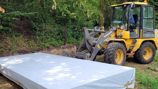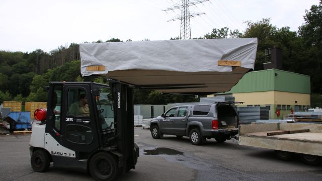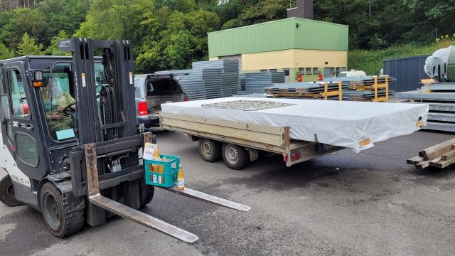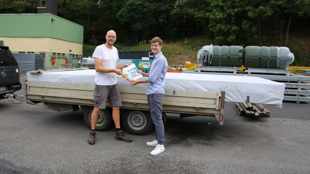 Diese Woche war es endlich soweit. Der dringend benötigte Materialcontainer für unser Streuobstwiesenprojekt konnte dank der großzügigen Spende der Firma Säbu im Werk in Morsbach abgeholt werden. Mit Hilfe des Zugfahrzeugs des Kooperationspartners VW-Stein und einem großen Hänger der Firma Dahl (Sägewerk) konnte der 5 Meter lange und 2,20 Meter breite Container zum Bestimmungsort transportiert werden und wartet jetzt auf die tatkräftigen Schülerinnen und Schüler um aufgebaut zu werden. Wir freuen uns sehr bald einen Schutz- und Lagerraum auf der Wiese zu haben und bedanken uns nochmals recht herzlich bei den Kooperationspartnern!