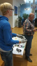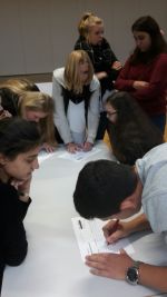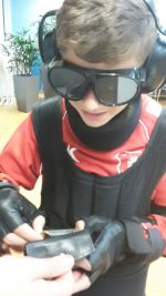 Mit einem „Alterssimulationsanzug“ fühlten sich unsere 9er in die Welt des alten Menschen mit all den Schwierigkeiten des alltäglichen Lebens ein. Spezialbrillen setzten sich die Schüler auf, um zu erleben, was ein Mensch mit „grauem Star“ oder „Altersdiabetes“ noch wahrnehmen bzw. sehen kann. Wie fühlt sich ein Mensch mit „Parkinson“ (Schüttellähmung)? Mit speziellen Handschuhen wurde ein Kontrollverlust über die eigenen Arme simuliert.