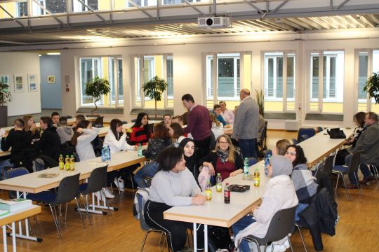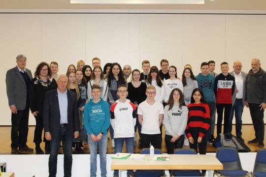 Nicht das erste Mal konnten unsere Schüler Erfahrungen im sozialen Bereich außerhalb der Schule sammeln. Seit November 2019 bis Ende Januar 2020 engagierten sich Schülerinnen und Schüler unserer Schule in verschiedenen Einrichtungen der Gemeinde Engelskirchen. Ihre Tätigkeitsfelder waren der Lepperhammer, das Haus Hohenfels und die AWO Ründeroth. In Zusammenarbeit mit der Ehrenamtsinitiative Weitblick und Herrn H.W. Rudloff sowie seitens der Schule Herrn J. Gerwing setzten sich Schüler der Jahrgangsstufe 9 im Bereich Gesundheit und Soziales freiwillig ein. Dafür wurden sie nun in einer kleinen Feier in der Mensa der Sekundarschule Engelskirchen durch den Bürgermeister und den stellvertretenden Landrat des oberbergischen Kreises geehrt. Die Erfahrungen, die unsere Schüler in den verschiedenen Einrichtungen machen konnten, waren vor allem von großen Respekt zwischen jung und alt geprägt. „Es war anders als erwartet“, meinten einige Schüler und drückten damit ihre positive Erfahrungen aus. Und Mitarbeiterinnen der verschiedenen Einrichtungen lobten die Offenheit unserer Schüler den alten Menschen gegenüber. Besonders wurden vier Schülerinnen hervorgehoben, die eine Kuchenverkaufsaktion für die Senioreneinrichtung der AWO Ründeroth initiierten. Dabei kamen etwa 100€ zusammen, die in CDs und Liedheften von Schunkelliedern bis zu Kirchenliedern für die älteren Menschen investiert wurden.