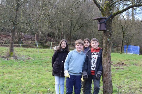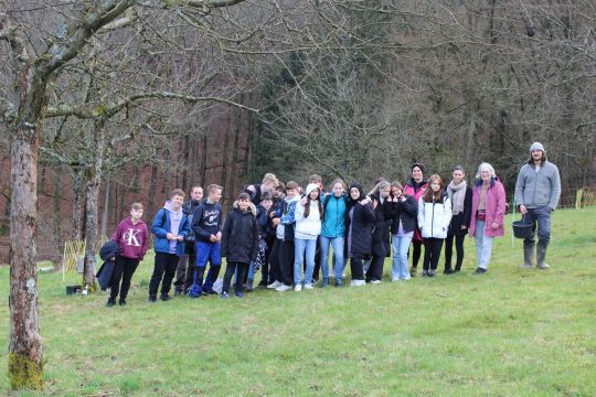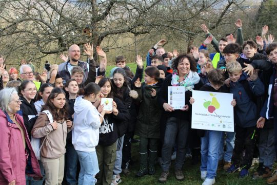 Vor zwei Jahren übernahm die Sekundarschule im Walbachtal die Patenschaft über die Bellingrother Streuobstwiese. In dieser Zeit ist sehr viel passiert. Das Areal bekam einen neuen Weidezaun inklusive Wildsicherung und die 170 Obstbäume wurden beschnitten. Seit 2022 findet eine Beweidung mit Rindern und Schafen statt.