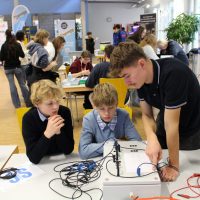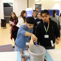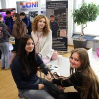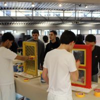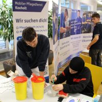 Am Dienstag zischte und hämmerte es in unserer Mensa. Zwölf Betriebe, z.B. aus der Gemeinde H&K Müller und Lukas Erzett und aus der Region, z.B. ONI, Schmidt&Clemens, Volksbank Oberberg, OVAG hatten interessante Stationen vorbereitet, die unsere Schülerinnen und Schüler durchlaufen konnten.