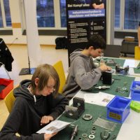 Personalleitung, Ausbilder und Auszubildende betreuten die Schülerschaft bei ihrem Rundgang und stellten sich vor. An jeder Station gab es eine besondere Aufgabe, z.B. Blutdruck messen, Löten, Malen, Tapezieren, Werkzeuge für Maschinengießtechnik zusammenbauen, usw.