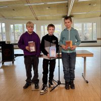Am Mittwoch, den 10. Dezember 2025, wurde es dann besonders aufregend: In der Mensa traten die drei Klassensieger gegeneinander an. Nach dem Vortrag aus ihrem eigenen Buch mussten sie sich zusätzlich einem unbekannten Text stellen, den sie spontan vorlasen.