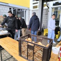 • Auf dem Schulhof grillten ältere Schülerinnen und Schüler Würstchen.