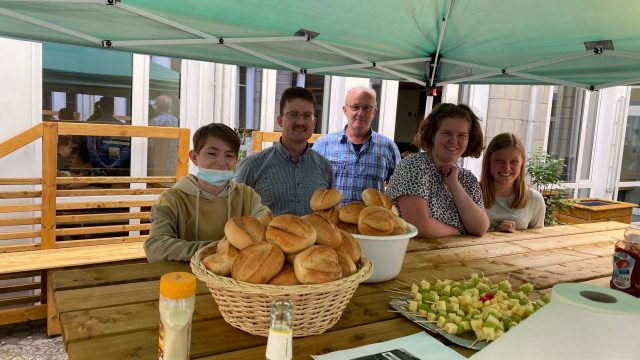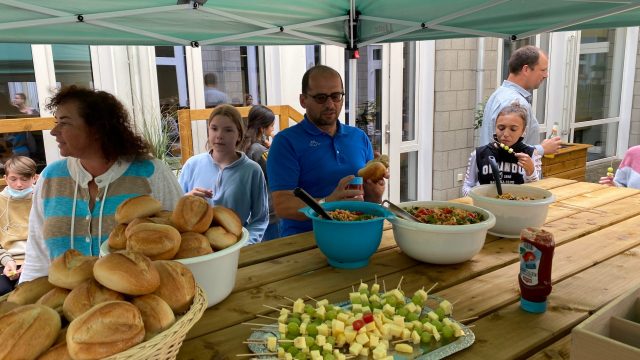 Nachdem die Abschlusszeugnisse überreicht wurden, wurde die Feier auf dem festlich geschmückten Schulhof fortgesetzt. Bei einem vielfältigen Buffet, netten Gesprächen und sonnigem Wetter ließen die Abschlussklassen und ihre Gäste den Abend gemütlich ausklingen. Am Ende gingen alle hochzufrieden und voller schöner Erinnerungen nach Hause.