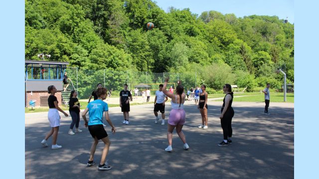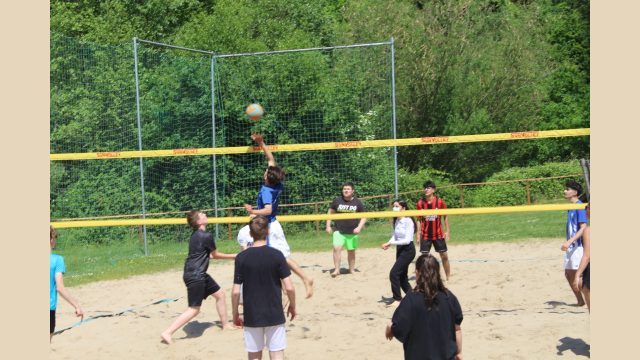 Nach langer Zeit konnte dieses Jahr wieder das allseits beliebte Volleyballturnier der Jahrgänge 9 und 10 stattfinden. Als Location hierfür diente der Aggerstrand in der Nähe der Schule und dessen integriertes Beachvolleyballfeld. Die Atmosphäre war sehr harmonisch und alle Spieler waren sehr ambiotioniert und motiviert als Sieger hervorzugehen, da der diesjährige „Preis“ ein finales Spiel gegen das Lehrerteam mitsamt Schulleitung war.