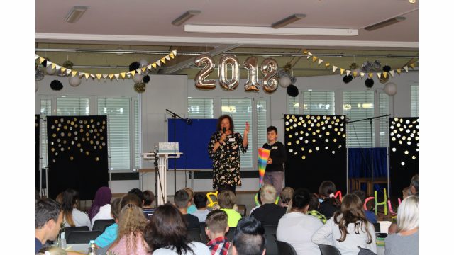 Ein kurzer Film über die Bereiche unserer Schule ermöglichte noch mehr Einblick in den Schulalltag, der auf die neuen 5er zukommen wird. Konkret wurde es bei kleinen Theaterstücken von den jetzigen 5ern, die auf witzige Art und Weise Unterrichtsstunden nachspielten und bereits auf erste Regeln an der neuen Schule hinwiesen. Ein Jumpstyle – Tanz der 6er, Liedvorträge und die abschließende Polonäse quer durch die Mensa, rundeten den abwechslungsreichen ersten Programmteil mit viel Spaß und Freude ab.