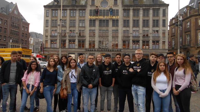 Eindrücklich war auch unser Tagesausflug ins „Venedig des Nordens“, Amsterdam. Schnell wurde allen klar, dass die Hauptsstadt der Niederlande mehr zu bieten hat als Coffeeshops, Frikandeln und Tulpen aus Amsterdam oder einer Frau Antje, die uns den Käse aus Holland, präsentiert. Einer unserer Höhepunkte war sicherlich die Grachtenfahrt und das alte Amsterdam, auch die Begegnung von mehr oder weniger berühmten Persönlichkeiten im Wachsfigurenkabinett ließen die Herzen unserer Schüler höher schlagen. Gemeinschaftsstiftend war dann auch der von den begleitenden Lehrern angeregte Grillevent am letzten Abend im Park.