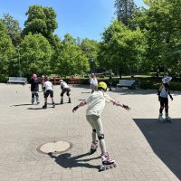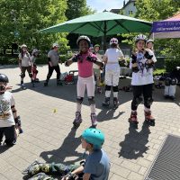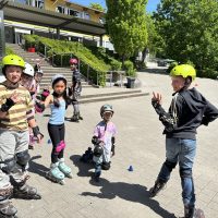 Am 14.05. und 15.05. war die Skateschule bei uns an der Schule zu Besuch. Bei herrlichem Wetter konnten die Klassen 5-7 auf den mitgebrachten Inlinern Erfahrungen sammeln. Nach den Fallübungen mit der Schutzkleidung wurden zunächst ein paar Fangspiele gespielt. Anschließend fuhren die Schüler in Kurven über den Schulhof und bewältigten den Slalom-Parkour. Einige wagemutige Skater trauten sich sogar den Berg herunterzufahren und nahmen dabei ganz schön Geschwindigkeit auf.