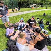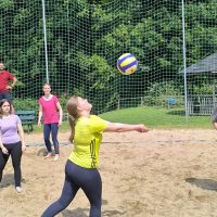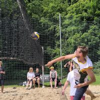 Mit Traumwetter und guter Laune starteten die Schüler und Schülerinnen zu Fuß von der Schule in Richtung Aggerstrand. Dort suchten sie sich schnell ein Lager meist im Schatten, um der Sonne zumindest zeitweise ein wenig entfliehen zu können. Nach der Begrüßung durch den Turnierorganisator Herrn Zimmermann startete das Turnier schon mit den ersten Spielen. Durchweg liefen die Spiele ausgesprochen fair und fröhlich ab. Während die 9er Klassen sportlich überzeugten, fielen die 10er Klassen durch ihre gute Stimmung auf. Trotz teilweise schwierigem Spielverlauf motivierten sie sich immer wieder gegenseitig. So kann man sich nur auf die gemeinsame Abschlussfeier in Kürze freuen.