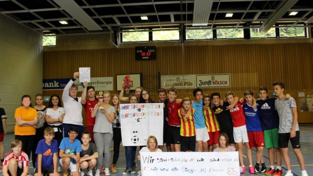 Mit großem Einsatz und viel Spaß haben alle Klassen an dem traditionellen Fußballturnier teilgenommen. Gespielt wurde dieses Jahr in den Jahrgangsgruppen 5/6, 7/8 und 9, die untereinander einen Fußball-Champion ermittelt haben. Die Gewinner des diesjährigen Turniers sind die 6a, 8b und 9c.