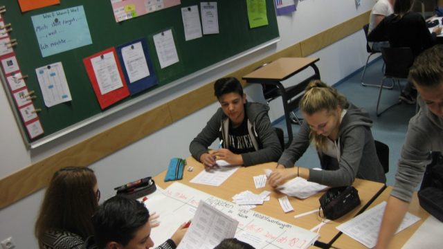 Im zweiten Teil des Methodentages hieß es dann „Lernen lernen“. Langweiliges Vokabeln-Pauken war gestern. An mehreren Stationen lernte die Klasse unterschiedliche Methoden kennen, um sich Vokabeln und Fachbegriffe besser zu merken.