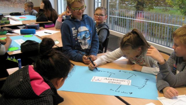 Aufbauer erwünscht – so lautet das neue Vorhaben der 5c nach ihrem ersten Methodentag. Ein gutes Klima in der Klasse muss geübt und gepflegt werden. Im Rahmen ihres ersten Methodentages lernten die Schülerinnen und Schüler der Klasse 5c zunächst was Aufbauer und Fertigmacher sind und welche Gefühle sie hervorrufen. Fertigmacher wie „Kannst du denn überhaupt nichts richtig machen?“ oder „du bist so dumm!“ passieren häufig aus Gedankenlosigkeit. Wie sich solche Fertigmacher anfühlen wurde an dem Stofftier Rudi ausprobiert. Schnell war klar, wie unangenehm und verletzend solche Worte sein können. Die gesammelten Fertigmacher landeten symbolisch im Papierkorb und sollen zukünftig durch Aufbauer ersetzt werden. In Gruppen hielten die Schülerinnen und Schüler verschiedene „Aufbauer-Sätze und –Verhaltensweisen“ auf Plakaten fest und beschlossen gemeinsam, diese in Zukunft häufiger zu gebrauchen.