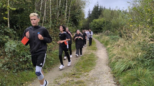 Zu Beginn des Laufs wurden alle Schülerinnen und Schüler mit einer Laufkarte für den Vermerk der gelaufenen Runden ausgestattet und gingen mit ihren Klassen zum nahegelegenen Waldstück. Dort wartete der 900m lange Rundweg darauf, mehrfach bezwungen zu werden.
