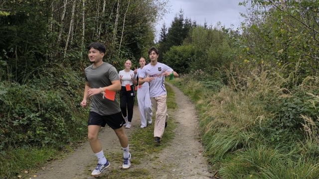 Am 24. September 2024 stand wieder unser Sponsorenlauf vor der Tür – und zwar in einer verregneten Woche. Da ein starker Regen zum Abbruch der Veranstaltung führen konnte, blickten alle Beteiligten rund um die Uhr auf ihre Wetter-App. Glücklicherweise blieben alle trocken. Abkühlung gab es also nur durch das Wasser aus den Trinkflaschen.