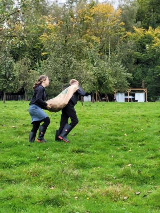 Trotz der abschüssigen Wiese, die in früheren Jahren für so manche Rutschpartie sorgte, gab es dank des robusten Profils der neuen Stiefel diesmal nur wenige Ausrutscher. Auch ein technischer Rückschlag – der Trecker blieb aufgrund eines Defekts auf der Strecke – konnte die Stimmung nicht trüben. Die Jugendlichen ließen sich nicht entmutigen und schafften es, die gesamte Ernte per Hand zu bewältigen.
