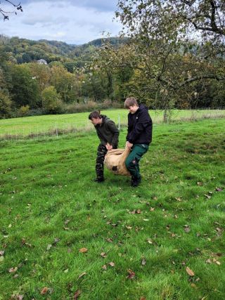 Bellingroth – Strahlende Gesichter, leuchtende Äpfel und jede Menge Spaß: Der diesjährige Erntetag der Sekundarschule im Walbachtal war ein voller Erfolg. Ausgerüstet mit neuen Stiefeln, Eimern, Kaffeesäcken, Seilen und Planen machten sich 54 Schülerinnen und Schüler auf den Weg zur Streuobstwiese in Bellingroth. Die Wetterbedingungen hätten nicht besser sein können, denn der Wettergott meinte es gut und bescherte den fleißigen Erntehelfern angenehmes Herbstwetter.